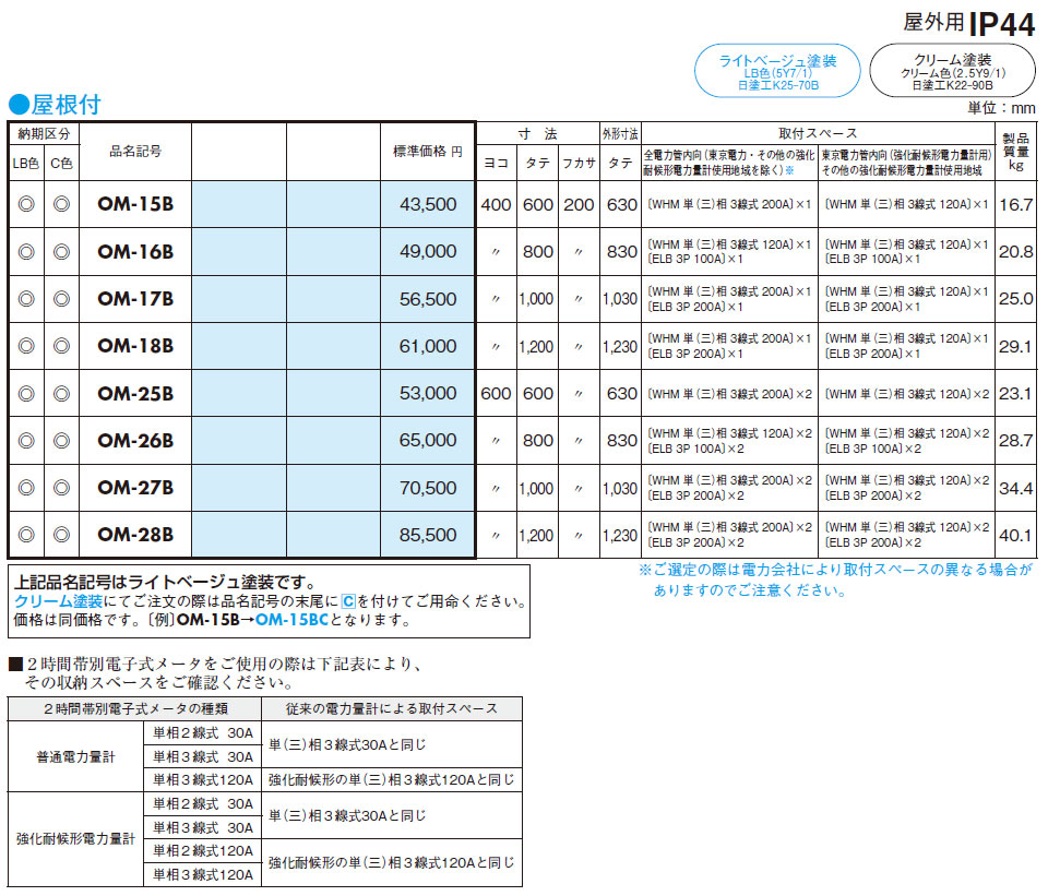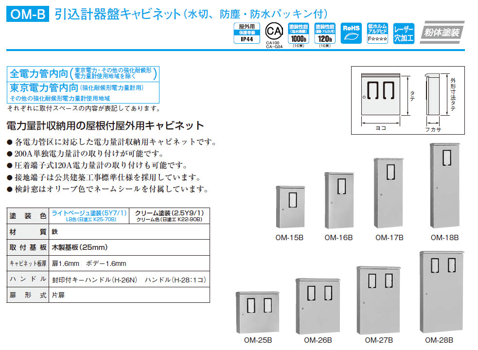 OM-17B 引込計器盤キャビネット(水切、防塵・防水パッキン付) 木製基板