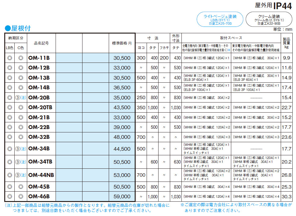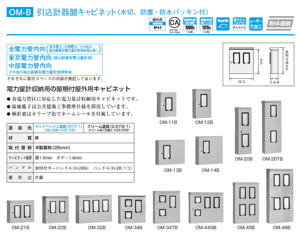 OM-12B 引込計器盤キャビネット(水切、防塵・防水パッキン付) 木製基板