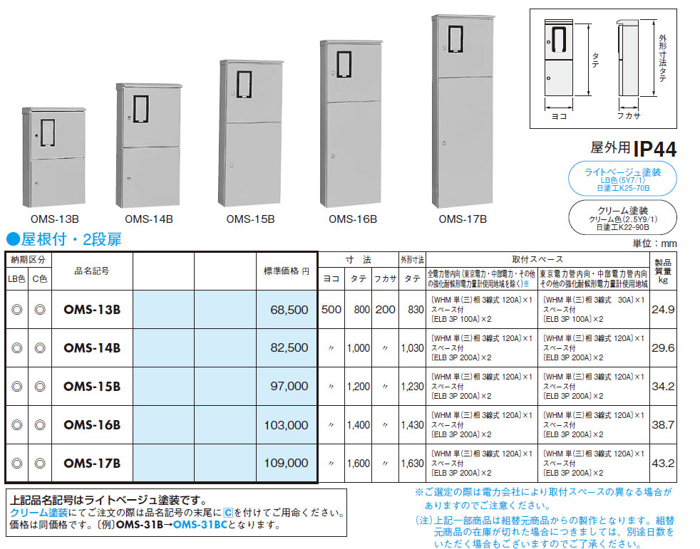 OMS-13B 引込計器盤キャビネット(水切、防塵・防水パッキン付) 木製基板