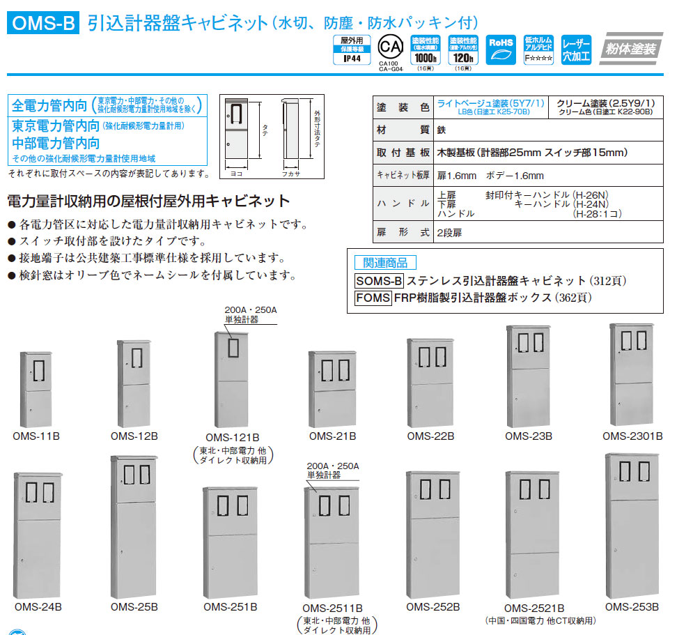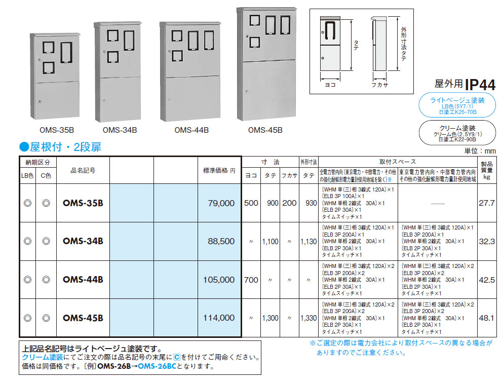 OMS-34B 引込計器盤キャビネット(水切、防塵・防水パッキン付) 木製基板