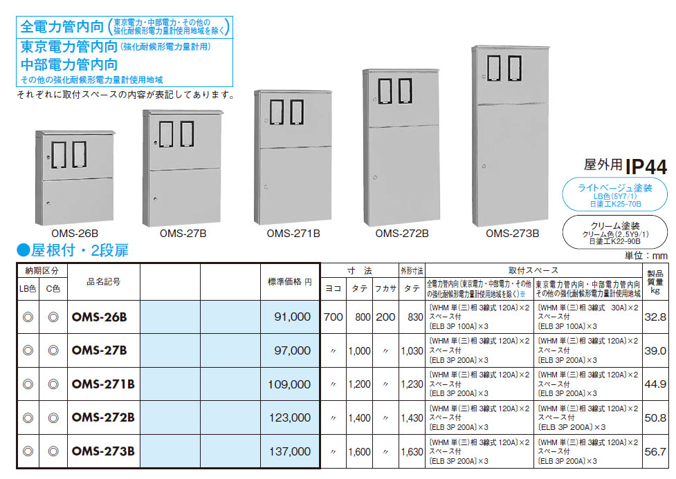 OMS-27B 引込計器盤キャビネット(水切、防塵・防水パッキン付) 木製基板