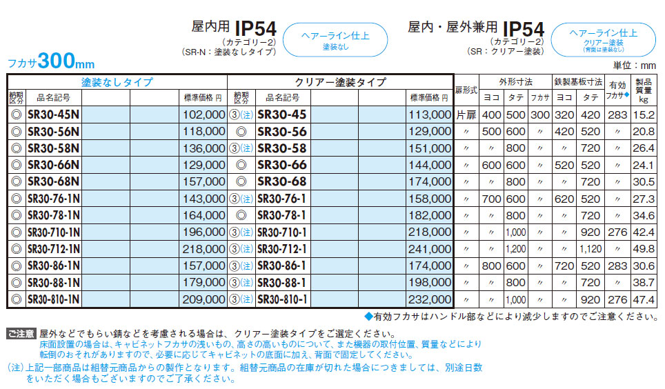 SR30-810-1N ステンレスSR形制御盤キャビネット 鉄製基板