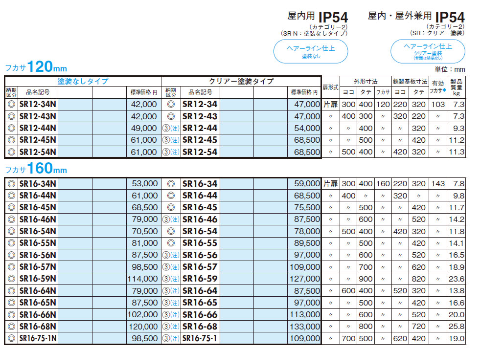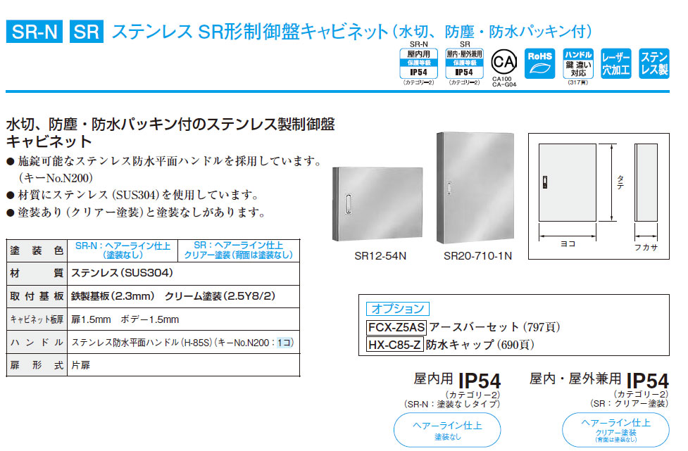 SR12-54N ステンレスSR形制御盤キャビネット 鉄製基板