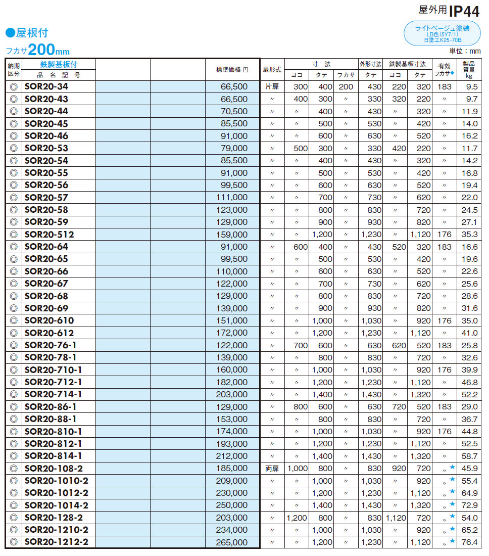 SOR20-1012-2 ステンレス屋外用制御盤キャビネット(水切、防塵・防水パッキン付) 鉄製基板