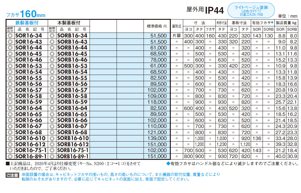 SOR16-43 ステンレス屋外用制御盤キャビネット(水切、防塵・防水パッキン付) 鉄製基板