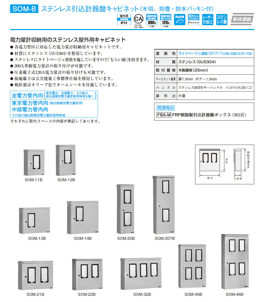 SOM-32B ステンレス引込計器盤用キャビネット 木製基板