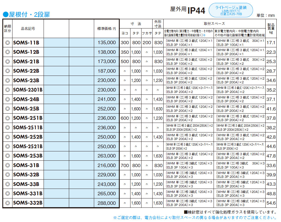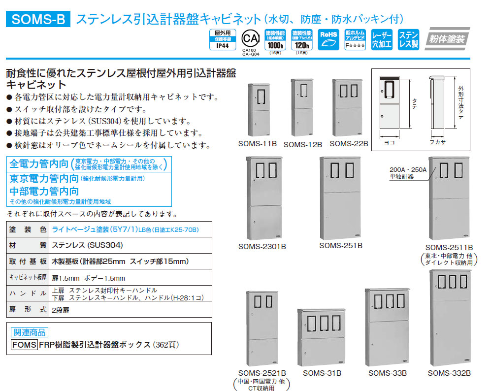 SOMS-22B ステンレス引込計器盤用キャビネット 2段扉  木製基板