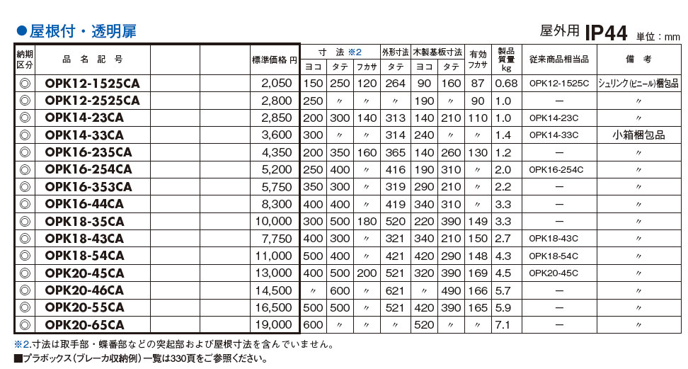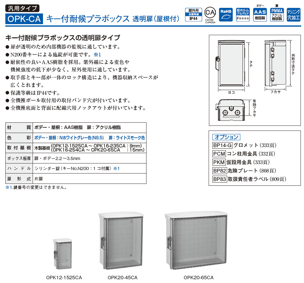 OPK12-2525CA キー付耐侯プラボックス 透明扉(屋根付)