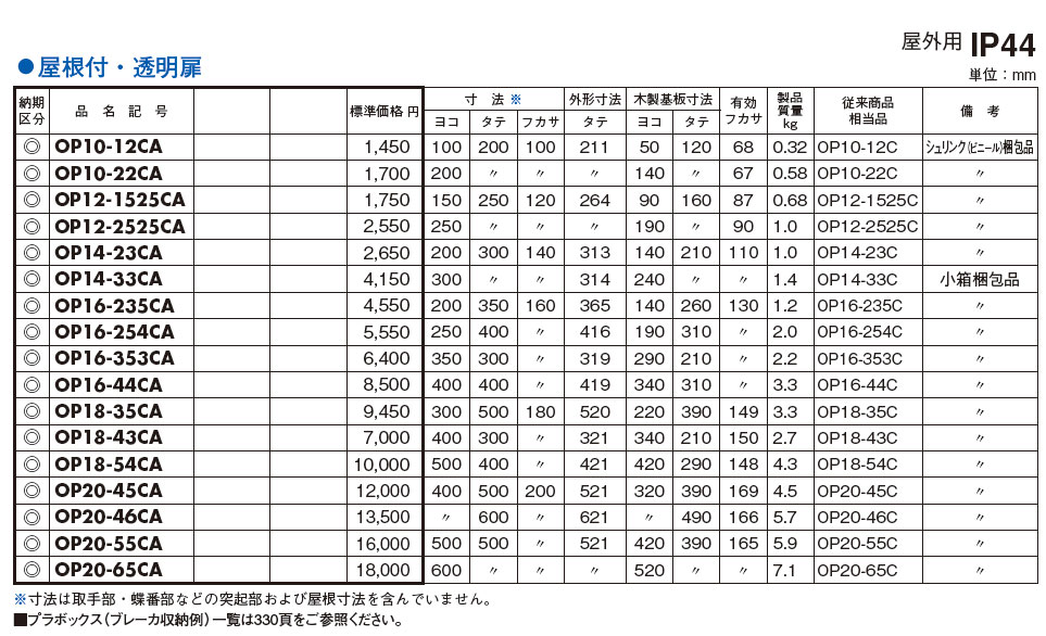 OP14-33CA プラボックス 透明扉(屋根付)