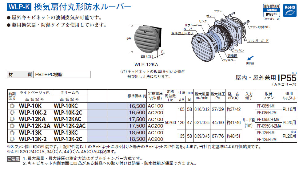 WLP-13K-2 換気扇付丸型防水ルーバー