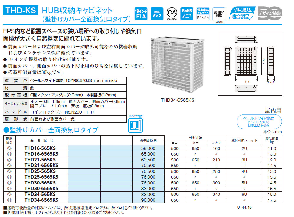 THD21-565KS HUB収納キャビネット(壁掛けカバー全面換気口タイプ)