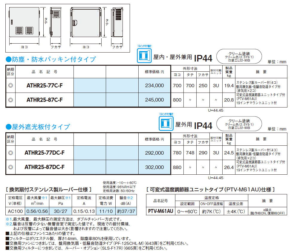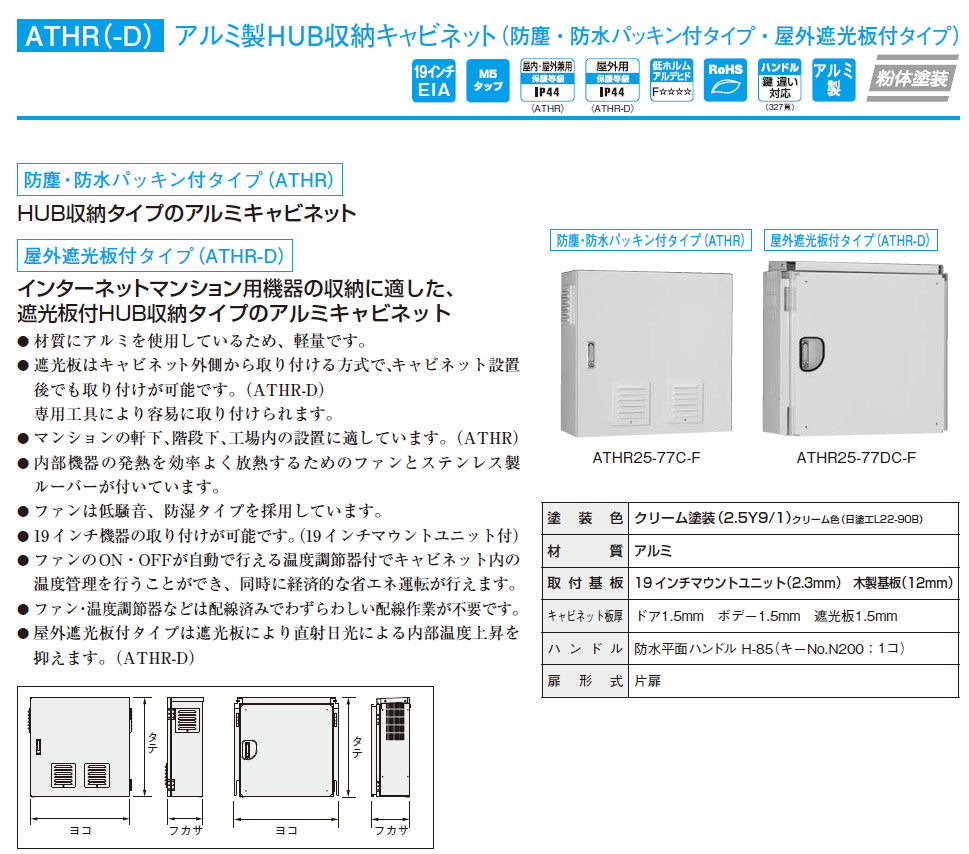 ATHR25-77DC-F アルミ製HUB収納キャビネットATHR-D 屋外遮光板付タイプ