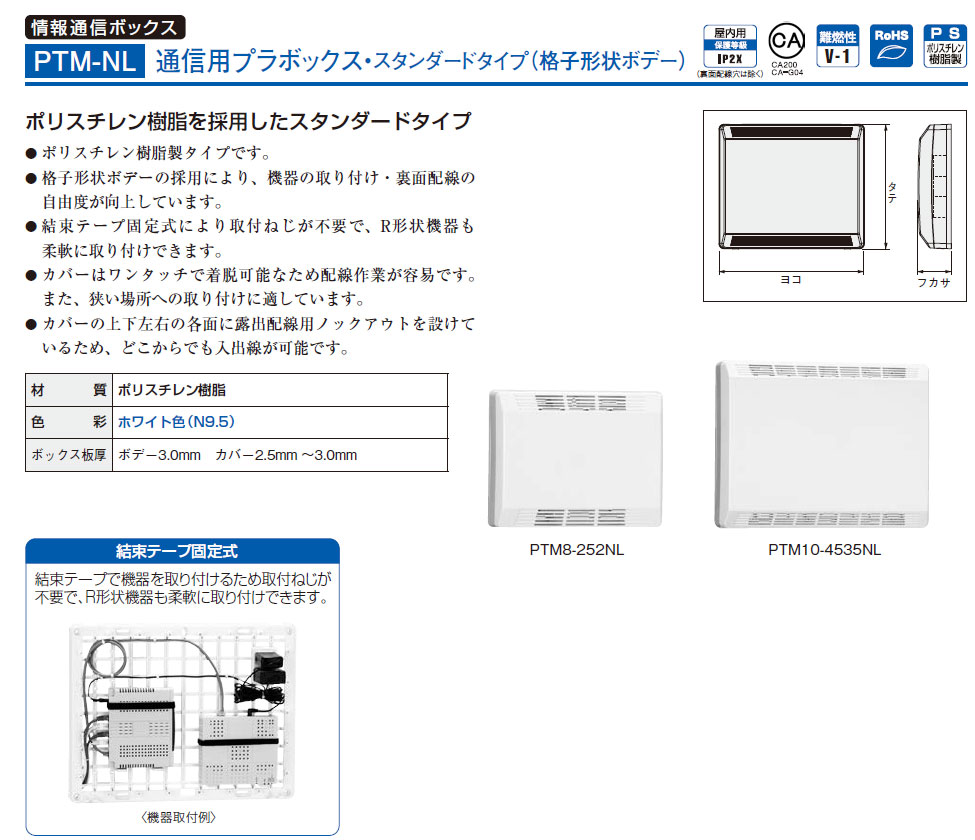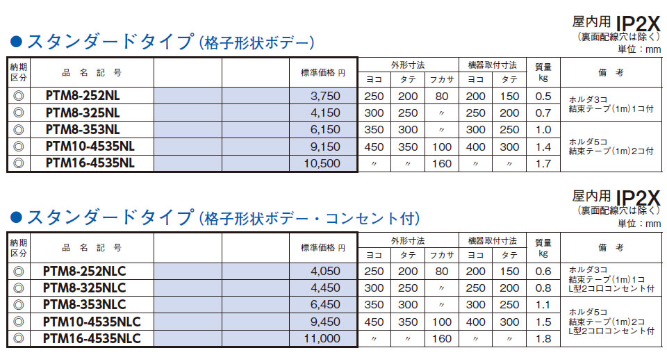 PTM8-252NLC 通信用プラボックス スタンダードタイプ(格子形状ボデー・コンセント付)