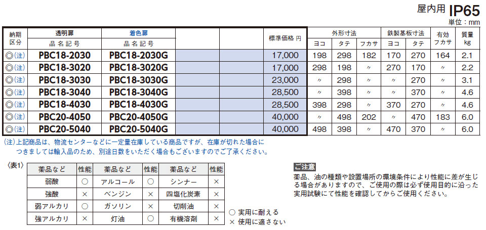 商品コード: PBC18-3020 ~ PBC18-3020G