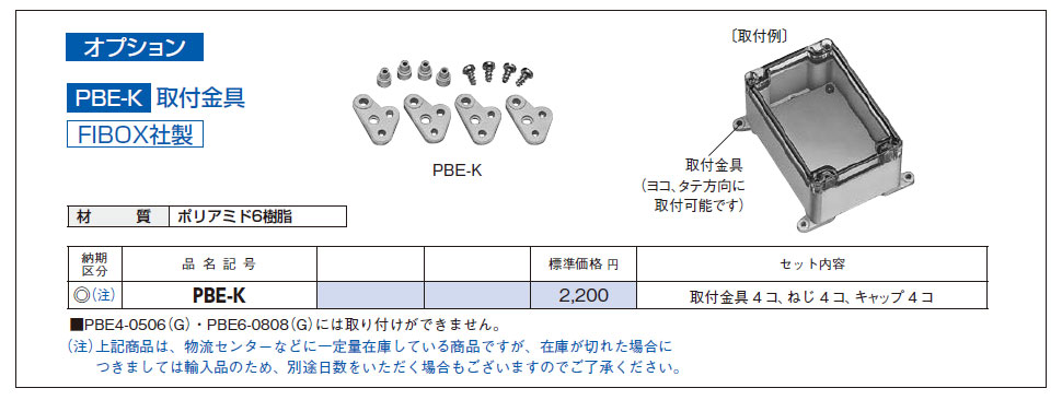 PBE-K オプション PBEポリカボックス取付金具