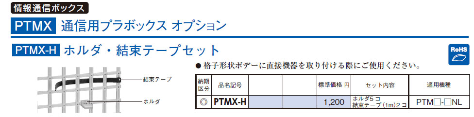 PTMX-H 通信用プラボックス・オプション ホルダ・結束テープセット