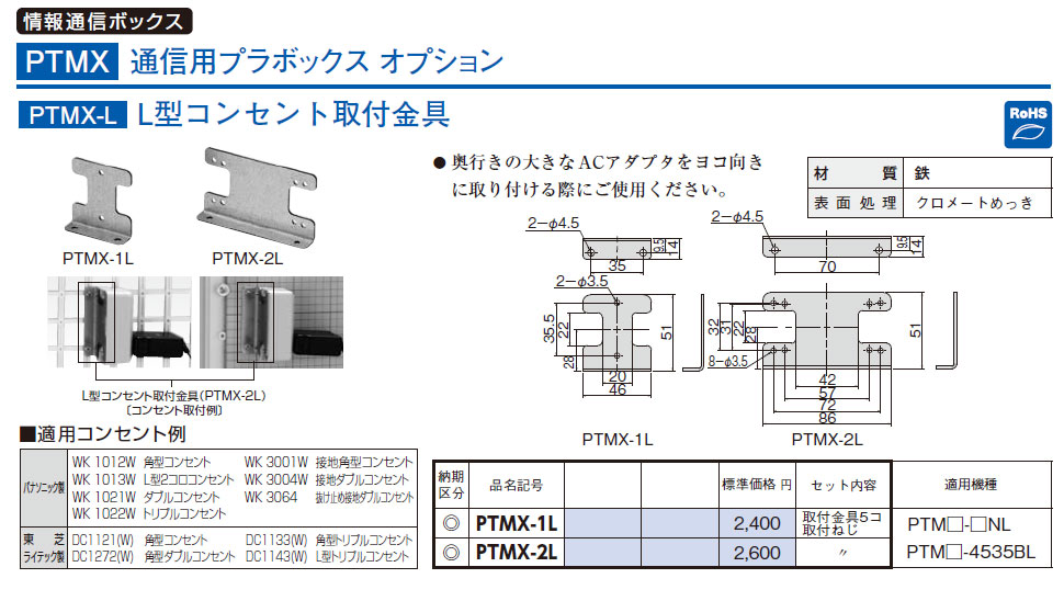 PTMX-2L 通信用プラボックス・オプション L型取付金具