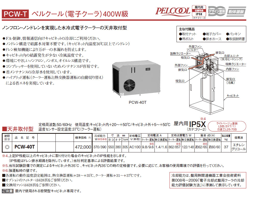 PCW-40T ペルクール(電子クーラ)400W級 天井取付型