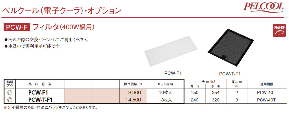 PCW-T-F1 ペルクール・オプション  フィルタ(400W級用)