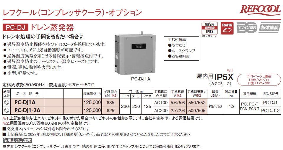 PC-DJ1A レフクール・オプション ドレン蒸発器