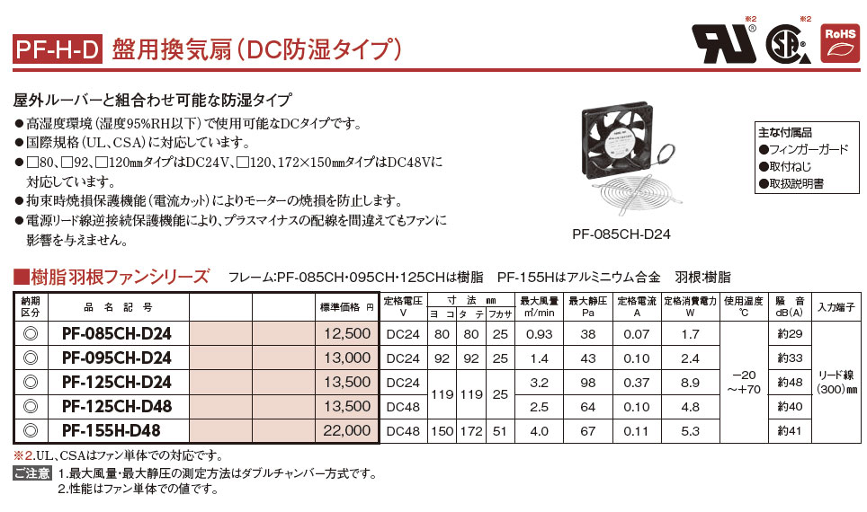 PF-155H-D48 PF-H-D 盤用換気扇(DC防湿タイプ)