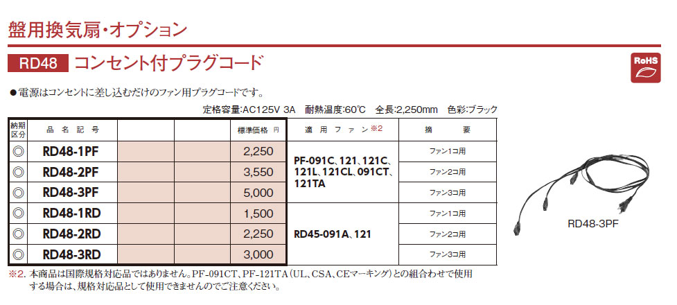 RD48-1PF 盤用換気扇・オプション コンセント付プラグコード