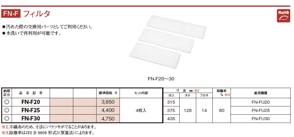 FN-F30 換気扇セット・オプション フィルタ