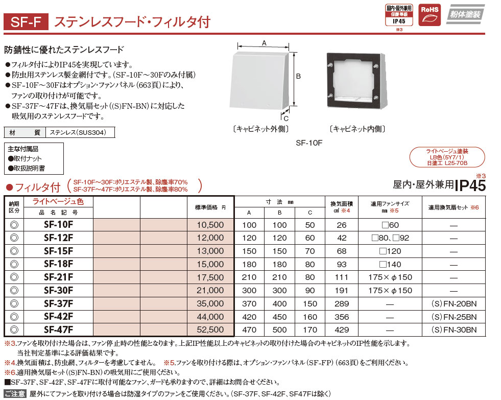 SF-10F SF-F ステンレスフード・フィルタ付