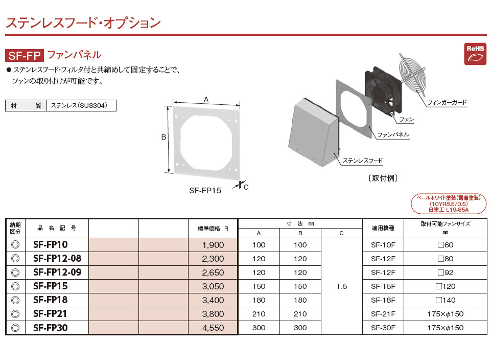 SF-FP12-08 ステンレスフード・オプション ファンパネル