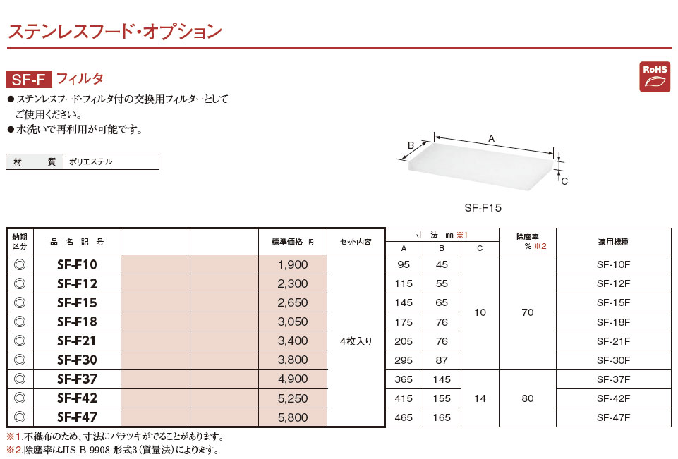 SF-F12 ステンレスフード・オプション フィルタ