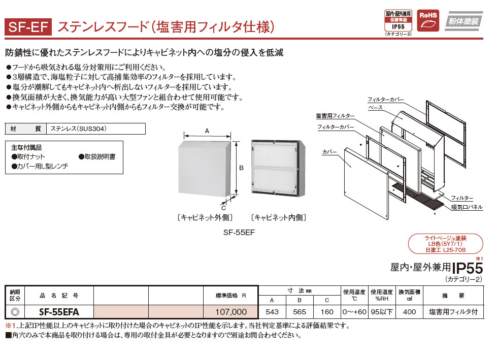 SF-55EFA ステンレスフード(塩害用フィルタ仕様)