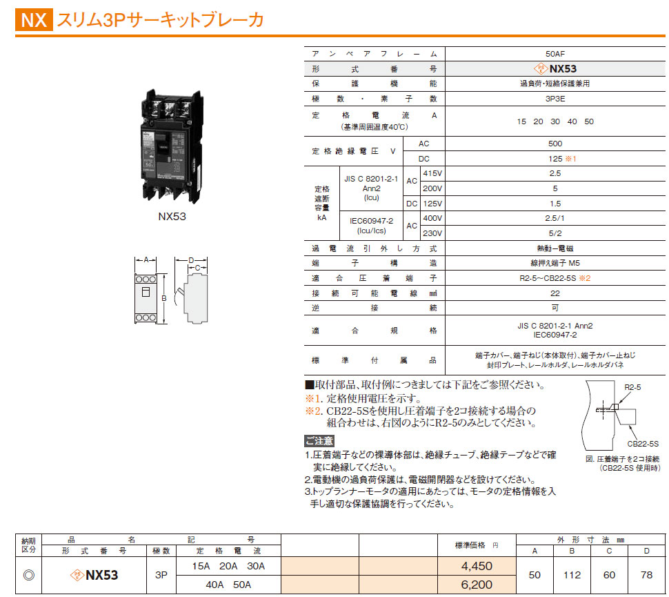 NX53 3P 40A スリム3Pサーキットブレーカ