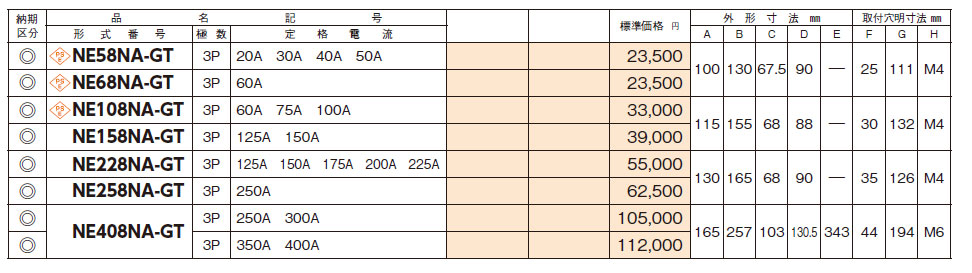 商品コード: NE58NA-GT 3P 40A