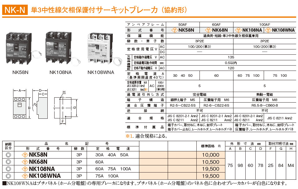 NK58N 3P 30A 単3中性線欠相保護付サーキットブレーカ(協約形)