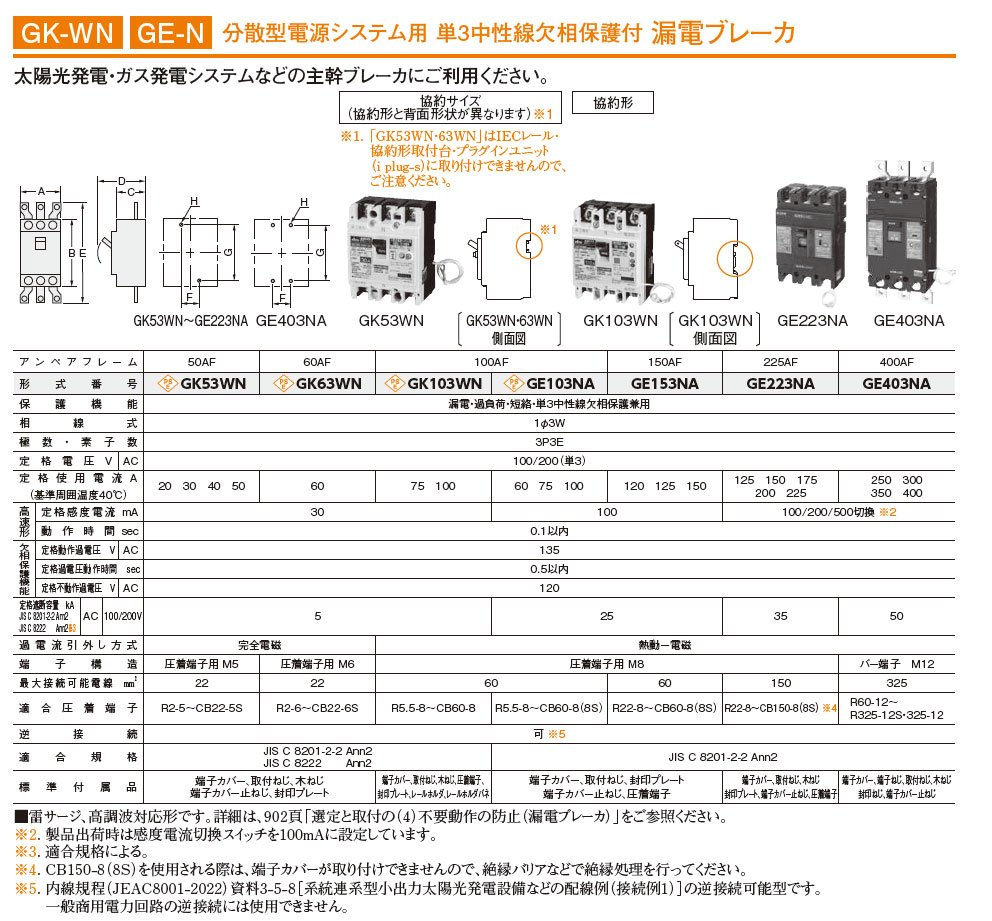 GE403NA 3P 350A FV 分散型電源システム用 単3中性線欠相保護付 漏電ブレーカ