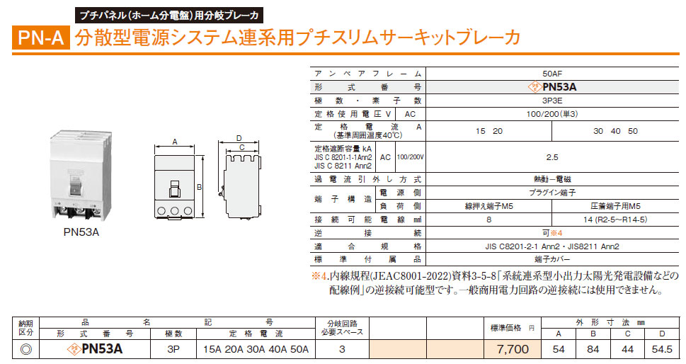PN53A 3P 15A 分散型電源システム連系用プチスリムサーキットブレーカ