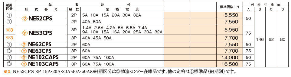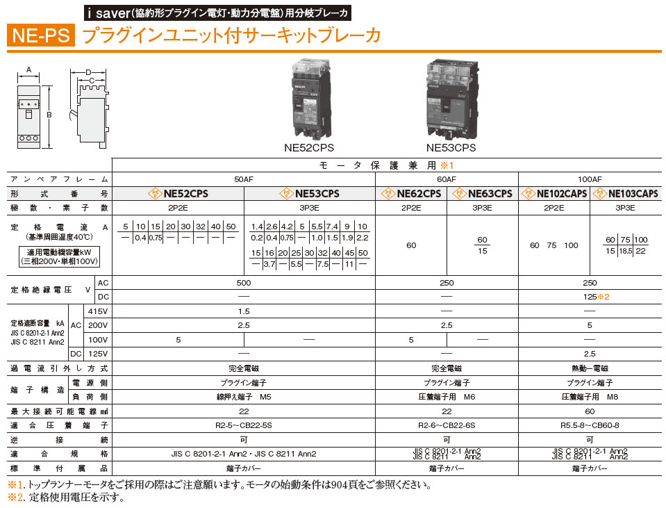 NE53CPS 2P 7.4A プラグインユニット付サーキットブレーカ