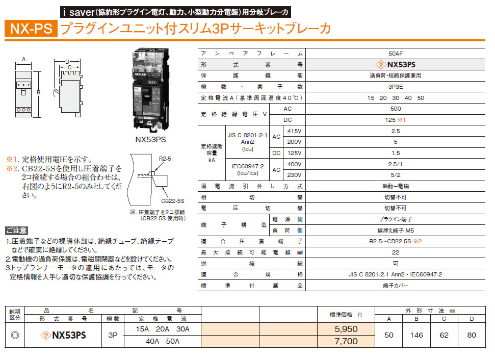 NX53PS 3P 30A プラグインユニット付スリム3Pサーキットブレーカ