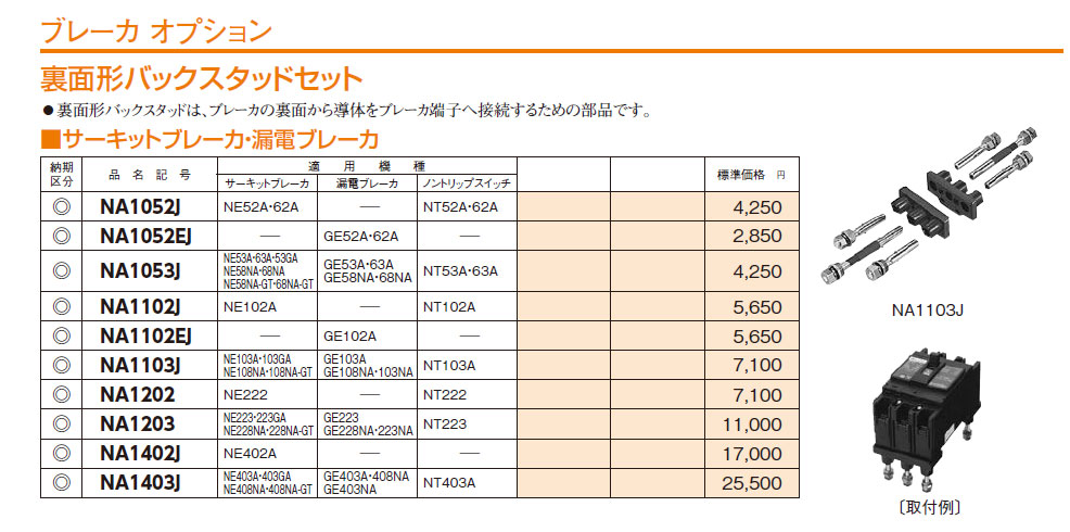 NA1203 ブレーカオプション 裏面形バックスタッドセット