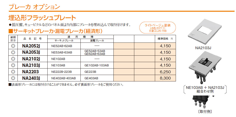 NA2203 ブレーカオプション 埋込形フラッシュプレート