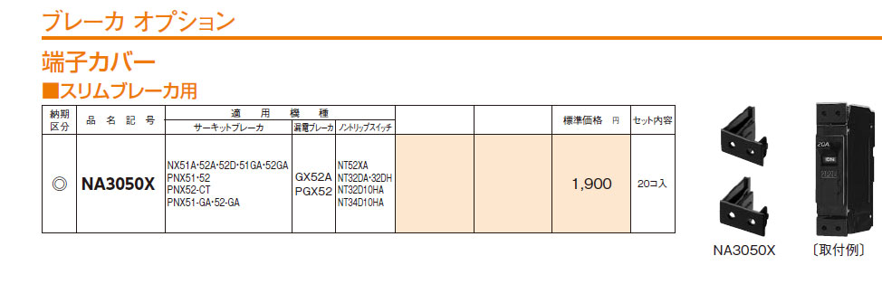 NA3050X ブレーカオプション 端子カバー