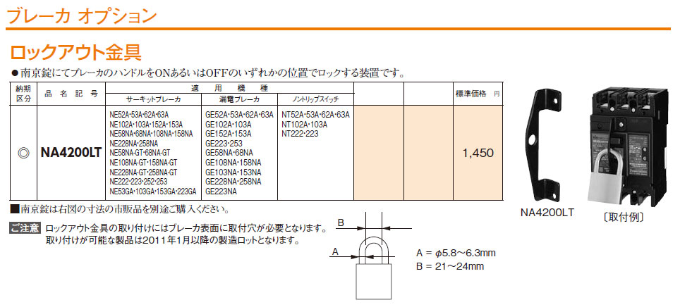NA4200LT ブレーカオプション ロックアウト金具