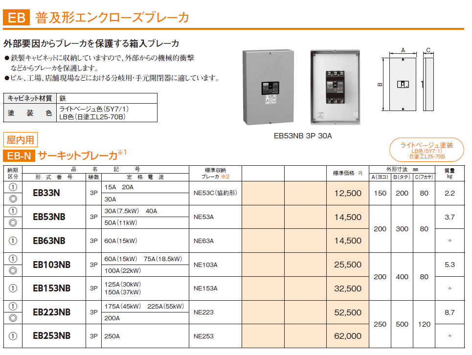 EB33N 3P 30A 普及形エンクローズブレーカ サーキットブレーカ
