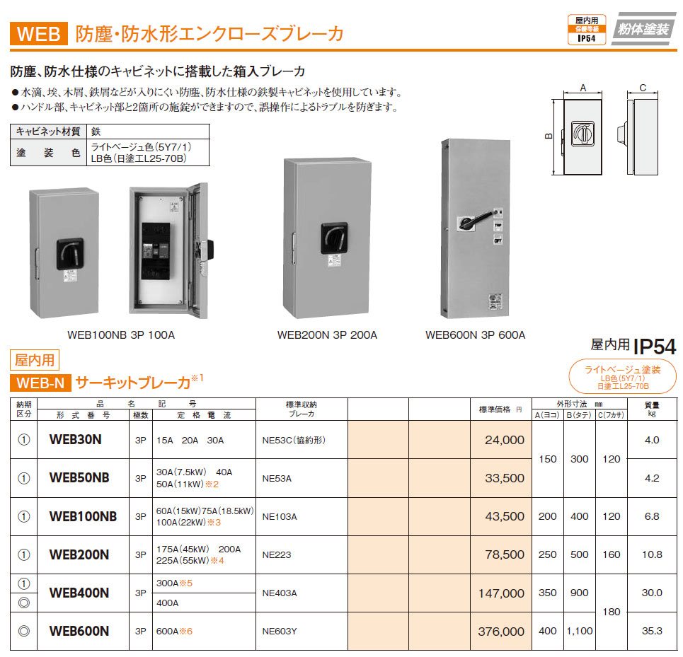 WEB50NB 3P 40A 防塵・防水形エンクローズブレーカ サーキットブレーカ
