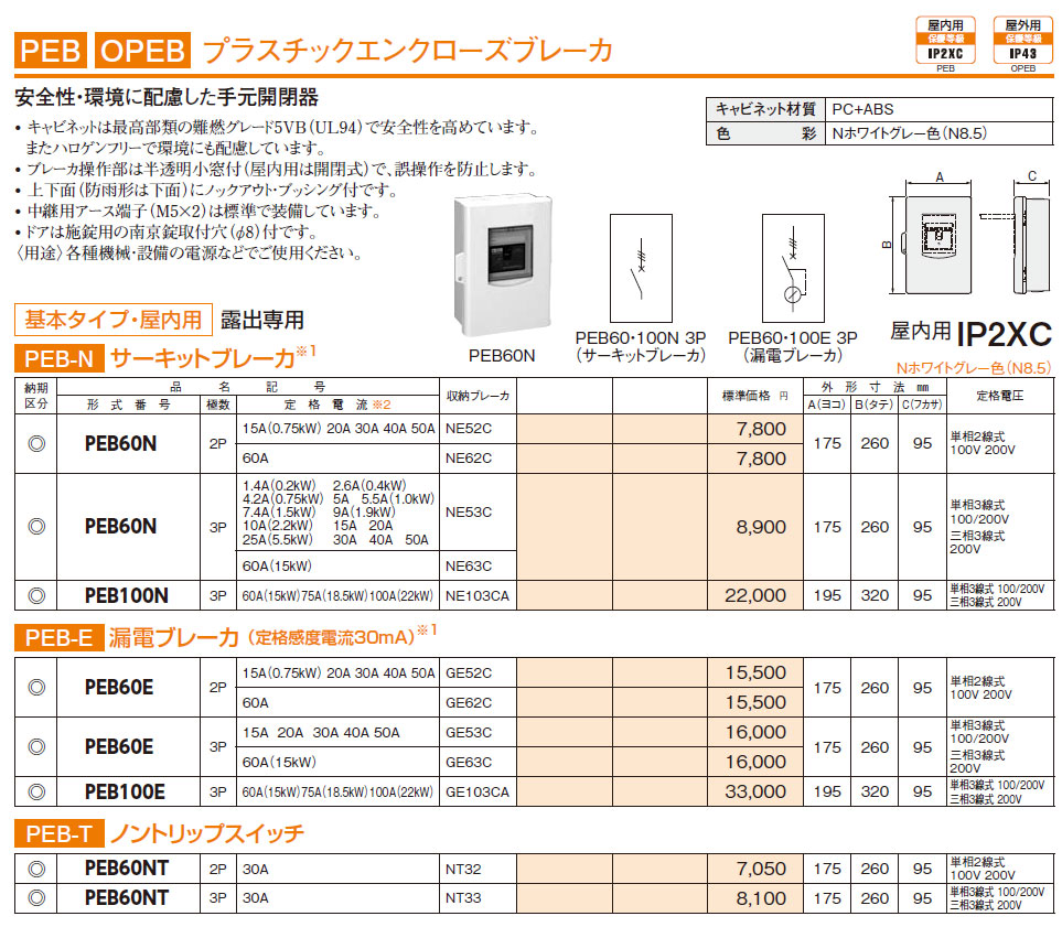 PEB60N 3P 50A プラスチックエンクローズブレーカ 基本タイプ・屋内用 サーキットブレーカ