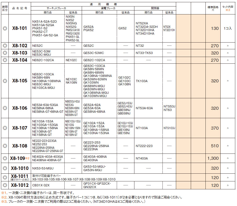 X8-101 ブレーカ補修パーツ 端子カバー