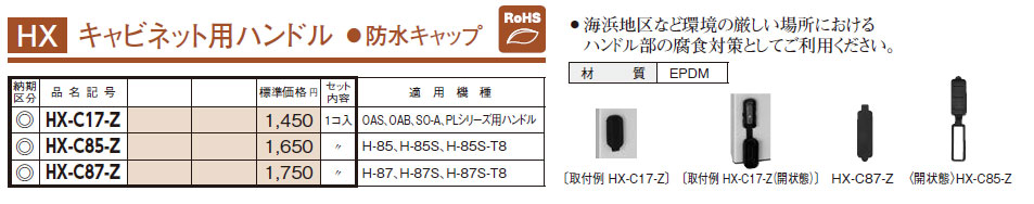 HX-C17-Z キャビネット用ハンドル 防水キャップ