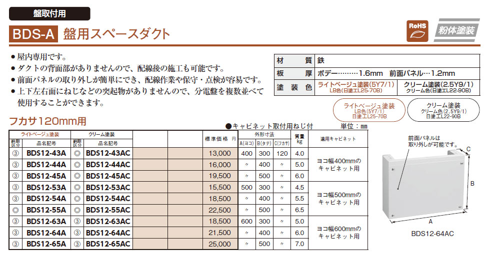 BDS12-64A 盤用スペースダクト フカサ120mm用