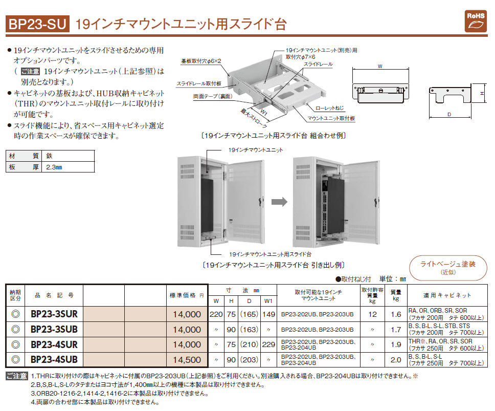 BP23-3SUR 19インチマウントユニット用スライド台