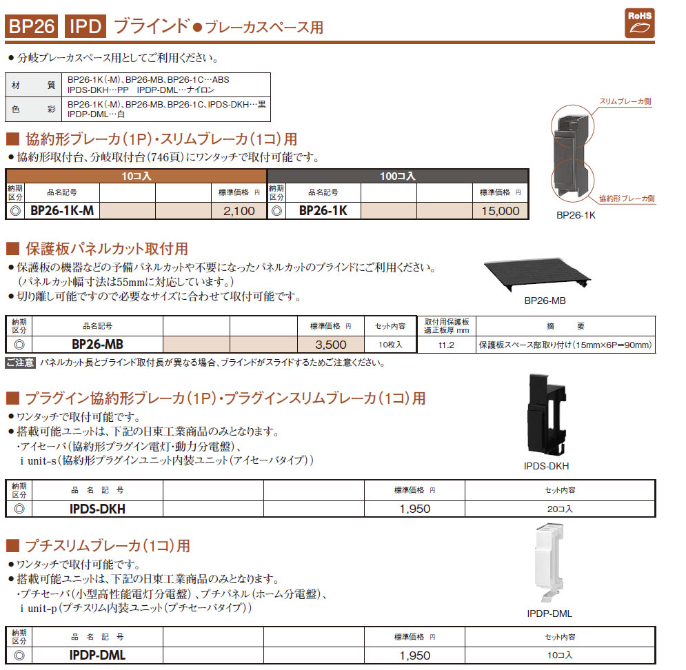BP26-1K-M ブラインド 協約形ブレーカ(1P)・スリムブレーカ(1コ)用 10コ入